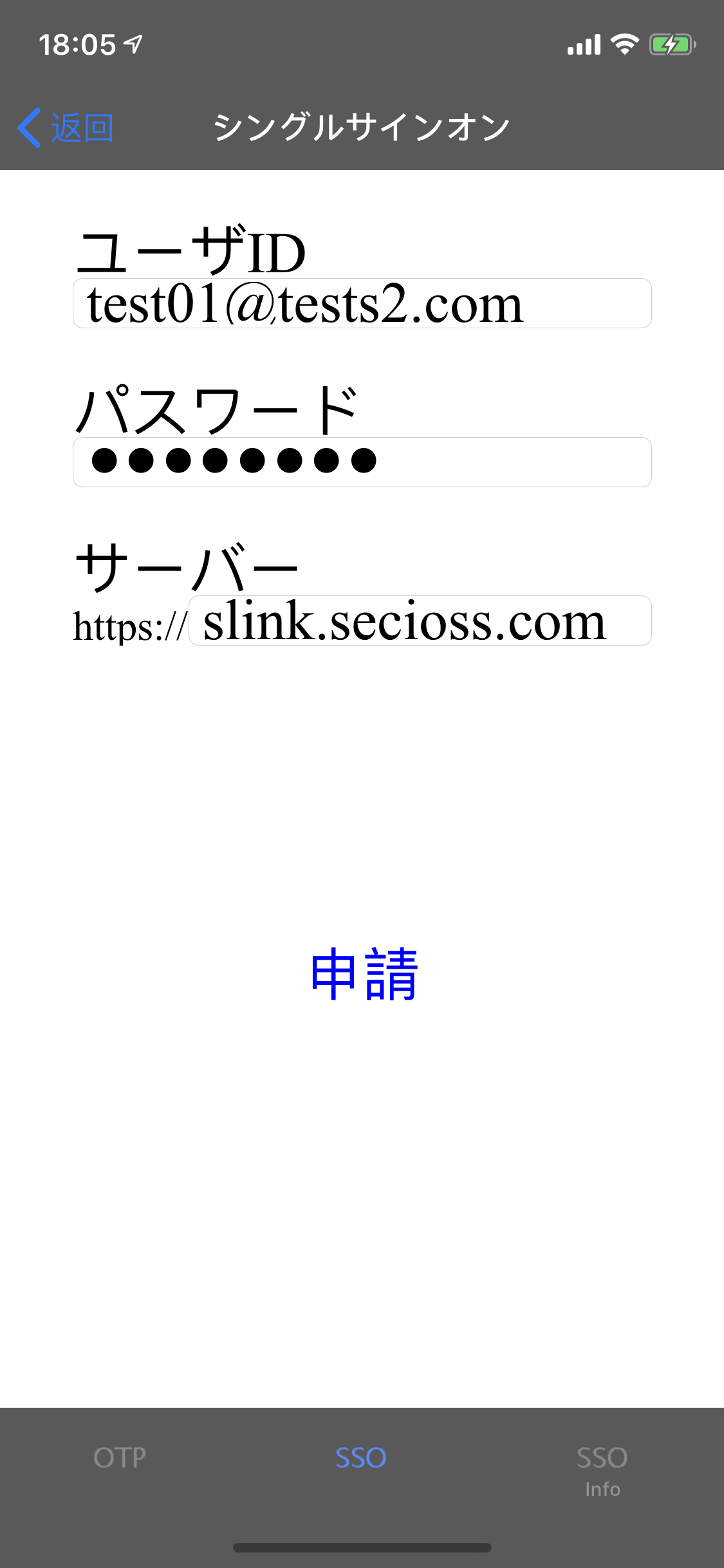 インストール終わりました後「SSO」タブを選ぶ、普段ログインにお使いのIDパスワードでログインすると端末登録が自動で行われます。
