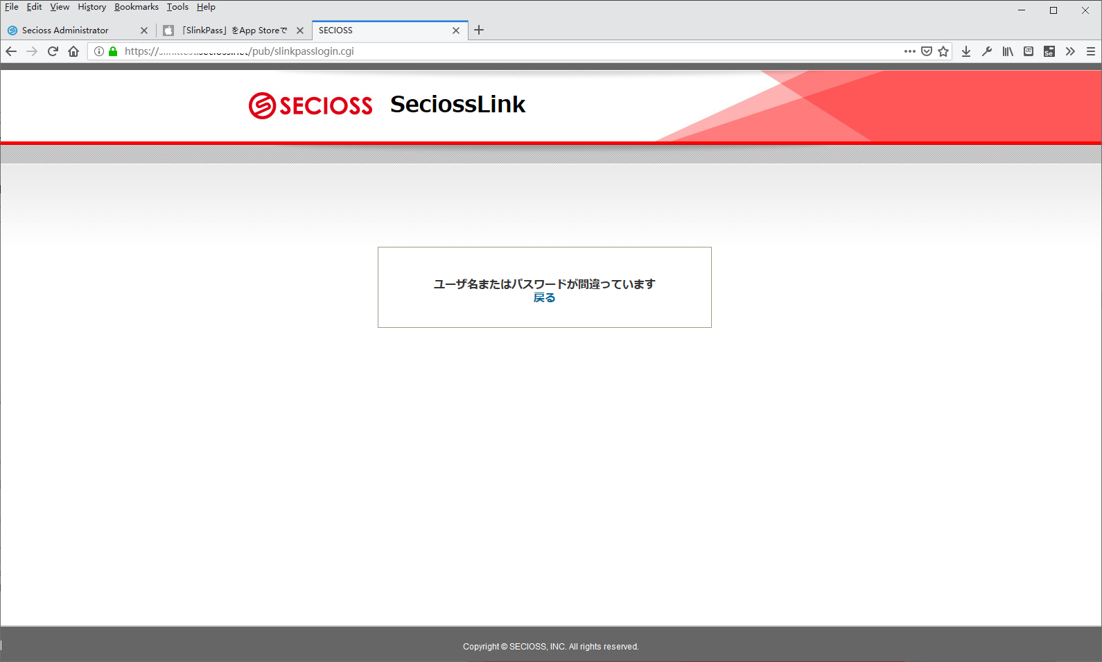 許可されていない端末でログインした場合、次の認証エラー画面が表示されます。